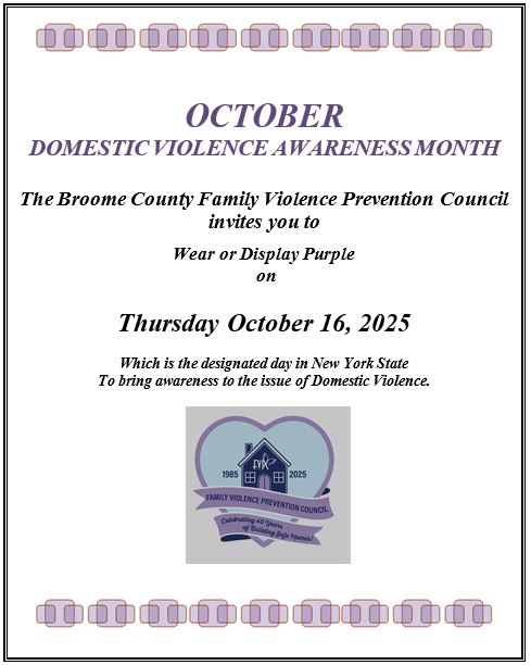 The Family Violence Prevention Council was formerly the Broome County Child Abuse Council which was formed in 1985 through a County Executive order.