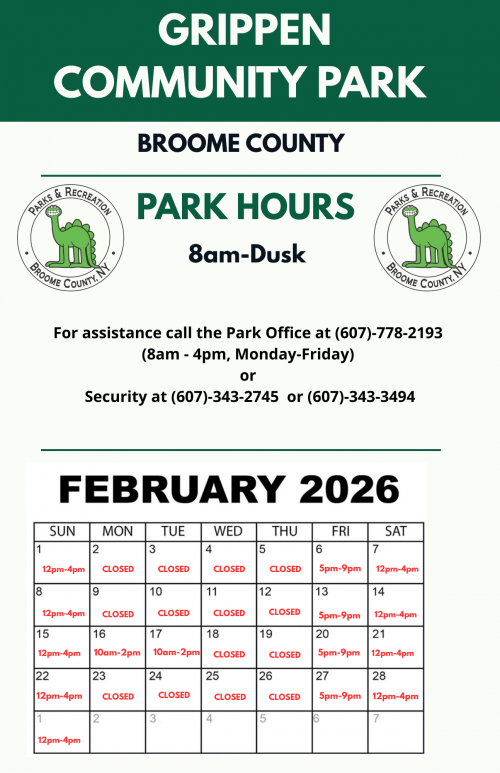 Grippen Park, located on Grippen Avenue in Endicott, offers a new unique dimension to year-round recreation in Broome County. Visitors can enjoy a simple picnic lunch or plan a large family event in this 14-acre park. The recently renovated recreational building, originally constructed as a community ice rink in 1972, now serves as a multipurpose indoor sports facility. The park also features outdoor fields for various activities and a convenient "float-off" boat ramp providing easy access to the Susquehanna River. Grippen Park is a welcoming space for relaxation, sports, and gatherings in every season.