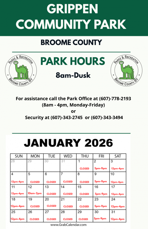 Building Hours: 8:00am-Dusk (April 1st thought October 31st)