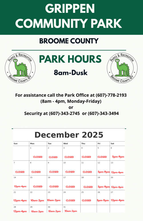 Grippen Park, located on Grippen Avenue in Endicott, offers a new unique dimension to year-round recreation in Broome County. Visitors can enjoy a simple picnic lunch or plan a large family event in this 14-acre park. The recently renovated recreational building, originally constructed as a community ice rink in 1972, now serves as a multipurpose indoor sports facility. The park also features outdoor fields for various activities and a convenient "float-off" boat ramp providing easy access to the Susquehanna River. Grippen Park is a welcoming space for relaxation, sports, and gatherings in every season.