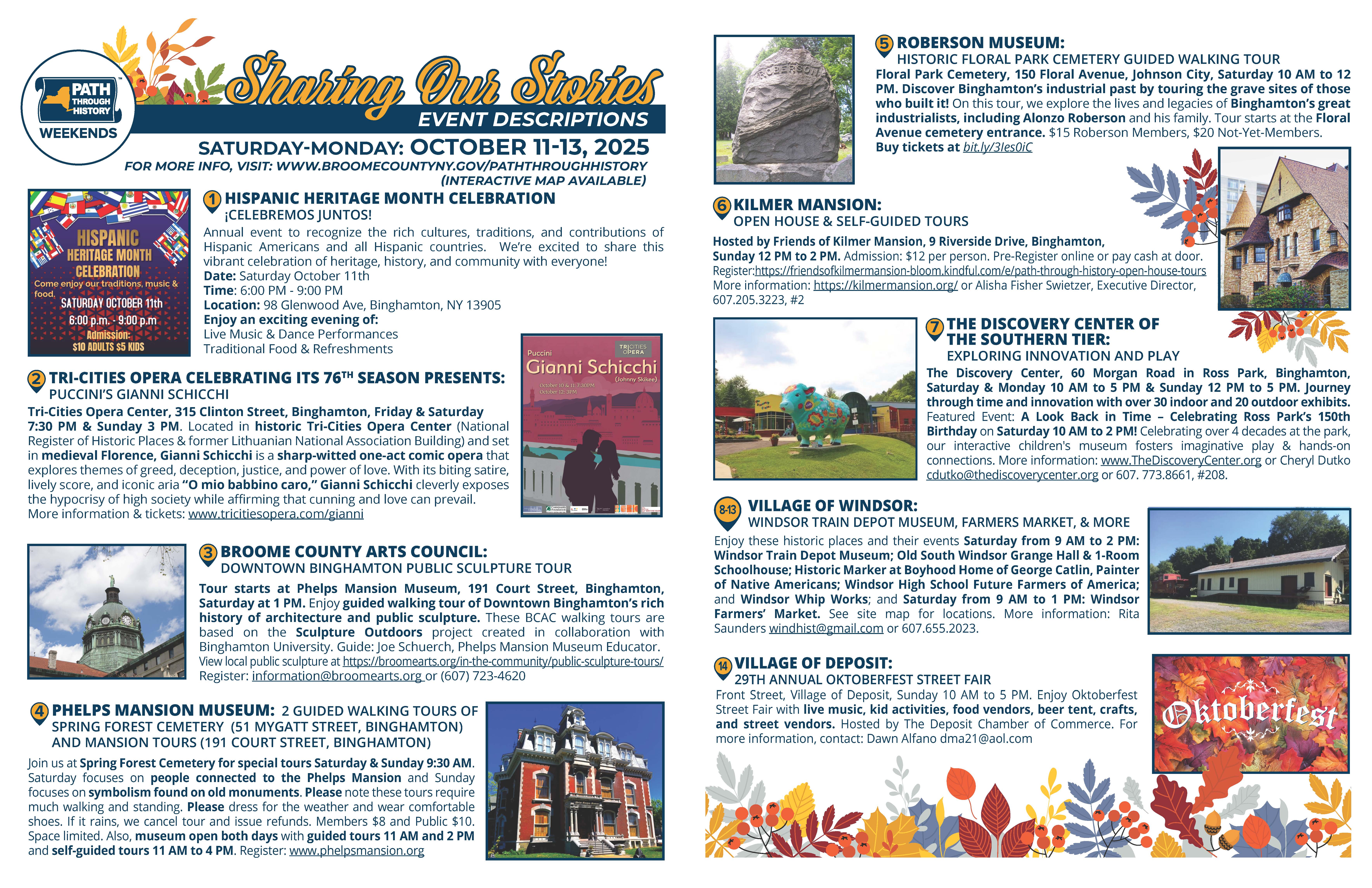 Broome County and Visit Binghamton are excited to highlight the historic, cultural and natural resources of the Broome County Susquehanna Heritage Area during the 2025 October Path Through History Weekend, with events at various locations being held throughout Broome County.