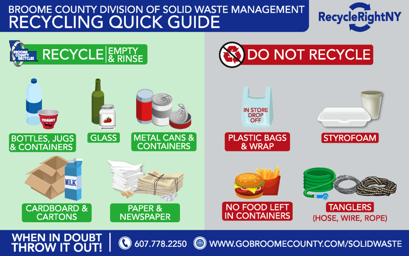 One of the primary challenges of our recycling program is contamination, which is non-recyclable materials that are put into recycling bins and ultimately disposes of. It is increasingly important to reduce the amount of contaminants in recycling streams to maintain a sustainable recycling system. The below Recycling Quick Guide shows some of the most basic and common materials we do accept and a few of the contaminates many mistakenly place in their recycling bin. Recycling Quick Guide 2019